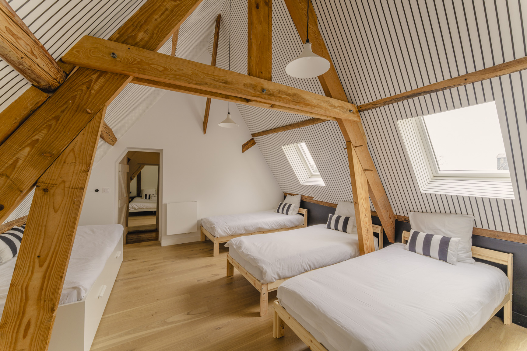 Le Manoir peut accueillir jusqu’à 13 personnes, réparties dans 4 chambres doubles et 1 dortoir de 5 lits… et une chambre bébé est en bonus :
